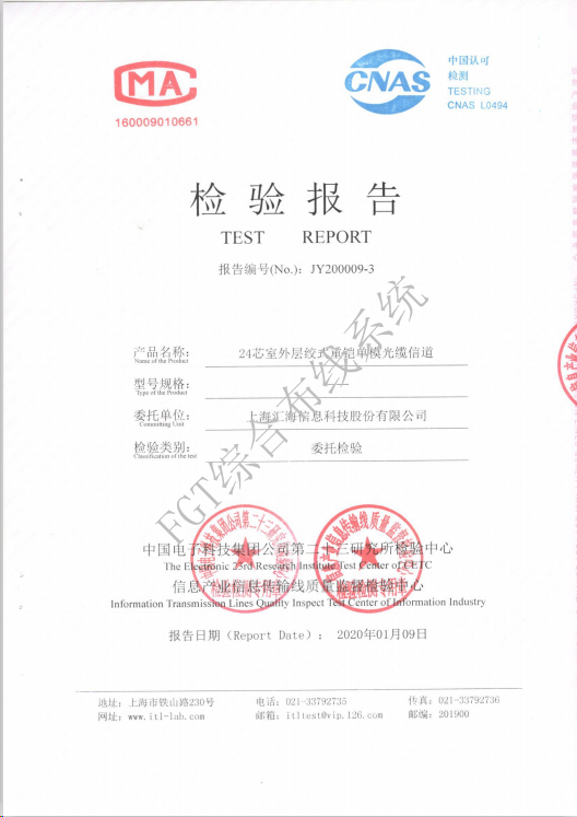 24芯室外層絞式重鎧單模光纜檢測報(bào)告