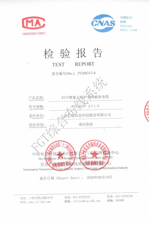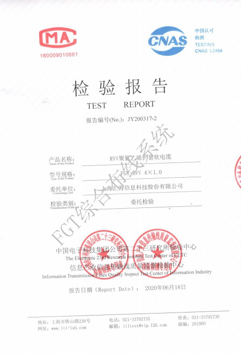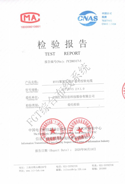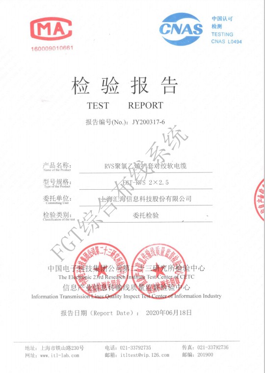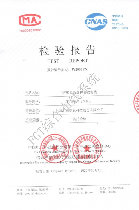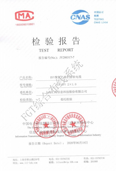 RVV2×0.5檢測報(bào)告