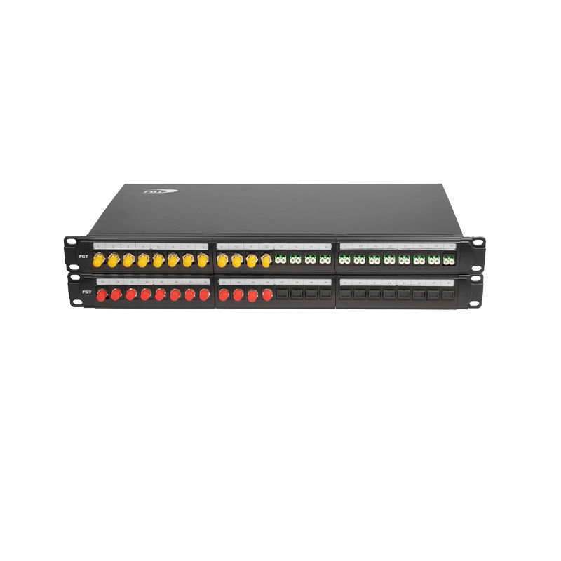 FGT 專利設(shè)計光纖終端盒,用于光纜熔接尾纖與光纜之間的保護,機架式安裝。 19英寸標(biāo)準(zhǔn)尺寸,可以安裝在任意19英寸機架, 殼體采用靜電噴塑,外形美觀,使用方便。內(nèi)配光纜固定裝置、熔接盤、過線環(huán)。執(zhí)行標(biāo)準(zhǔn):YD/T 926.3、YD/T 778ANSI/TIA-568.3-D、ISO/IEC 11801