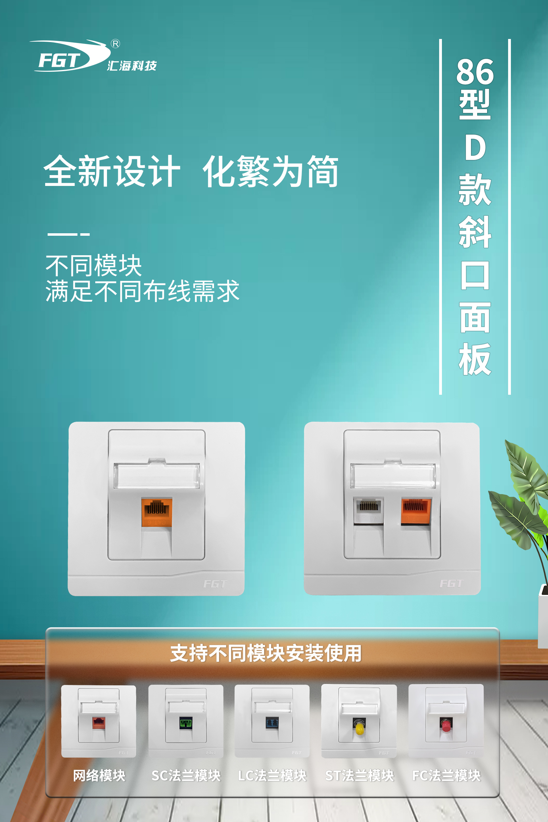86型國際標準,面板表面看不見螺絲設(shè)計,適合多類型模塊安裝,應(yīng)用于工作區(qū)布線子系統(tǒng)所有面板都帶有保護門,扣位式面板設(shè)計防止灰塵污染,嵌入式面框,安裝方便。