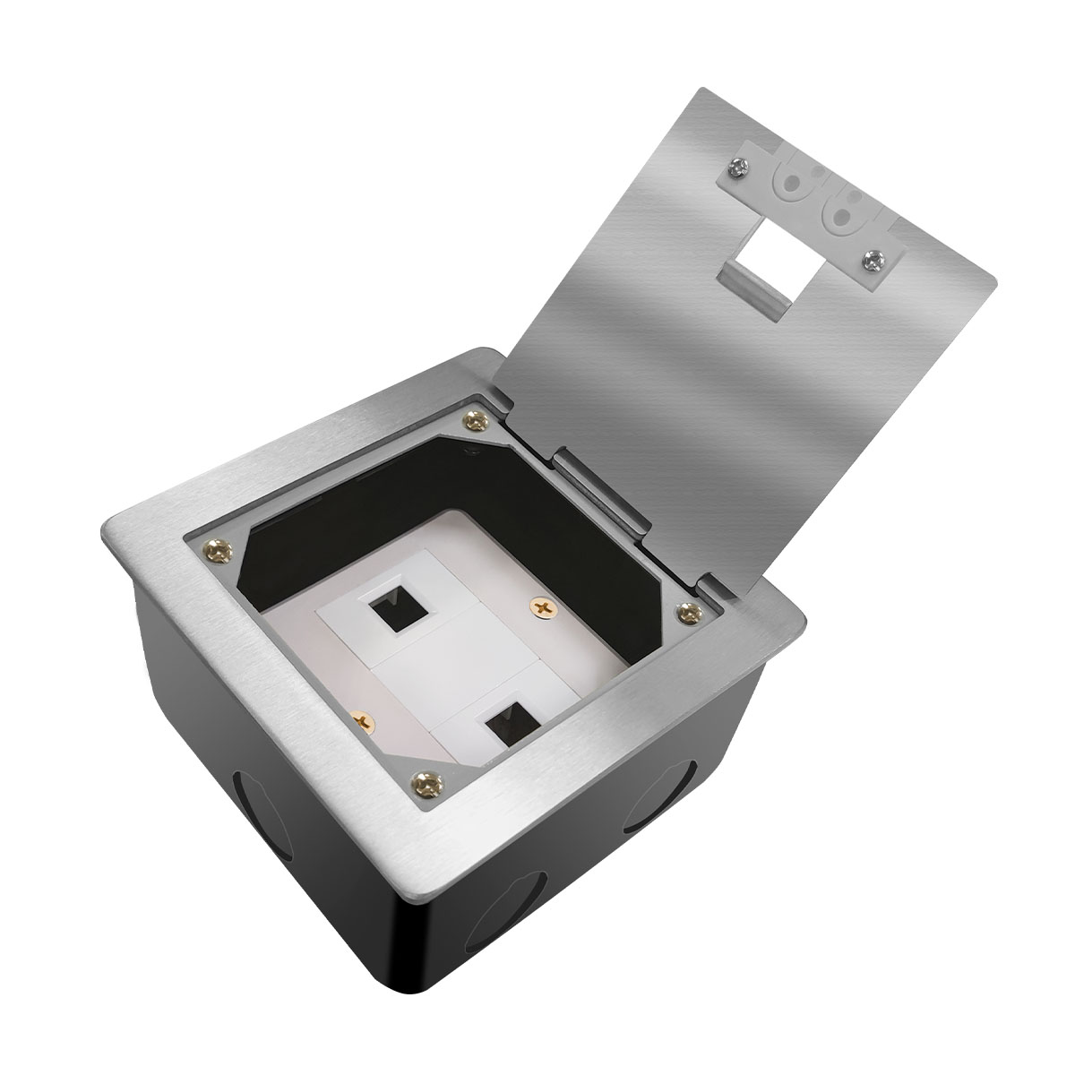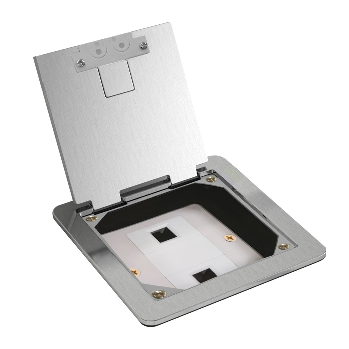 此款地插與86型掀蓋式地插要區(qū)別在于:86型地插可以安裝4個模塊,100型掀蓋式地插只能安裝3個模塊,不能安裝86型面板,底盒是普通型100*100底盒。